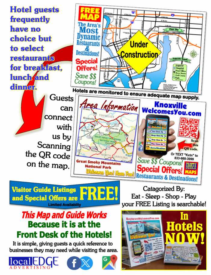 this handy 5.5” X 8.5” map guide is one of the most widely used visitor information guides among area visitors.