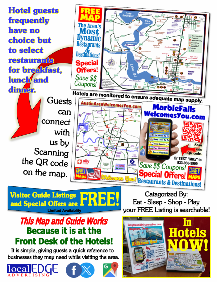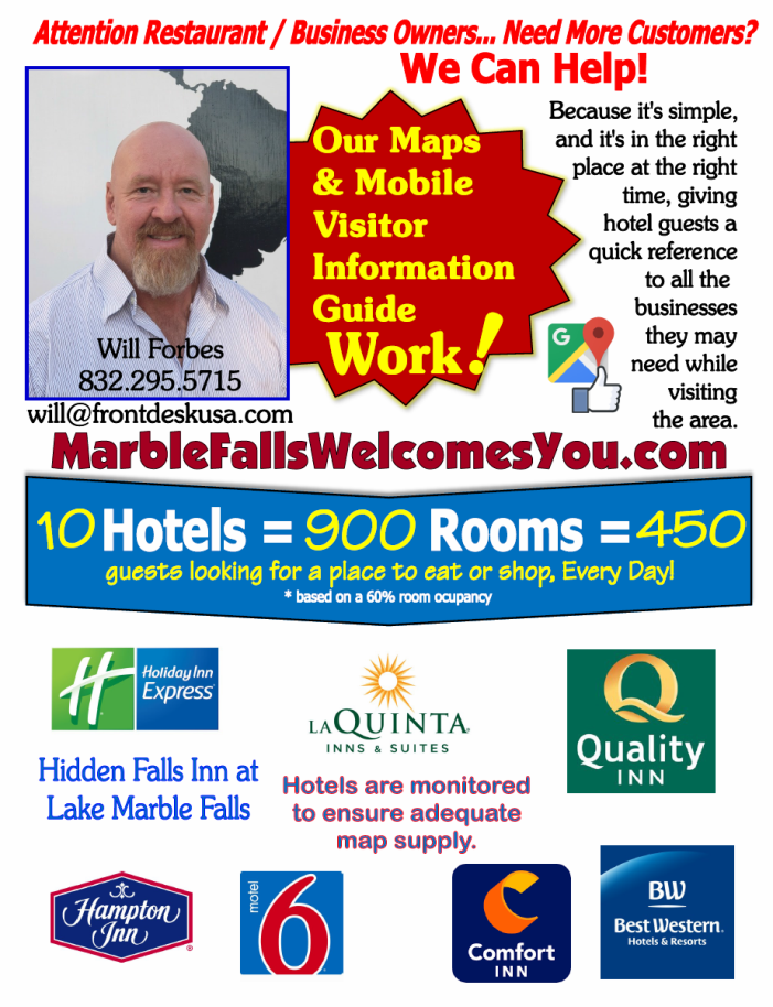 Hello, easily the best print hospitality advertising value in the Marble Falls /Austin area,